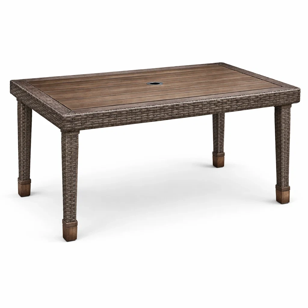 Table rectangulaire en bois et résine tressée 150x90x74 cm