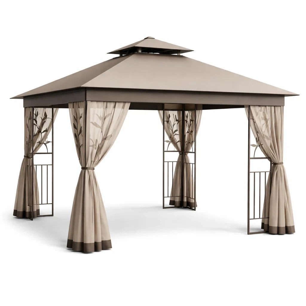Tonnelle de jardin en aluminium avec rideaux en polyester